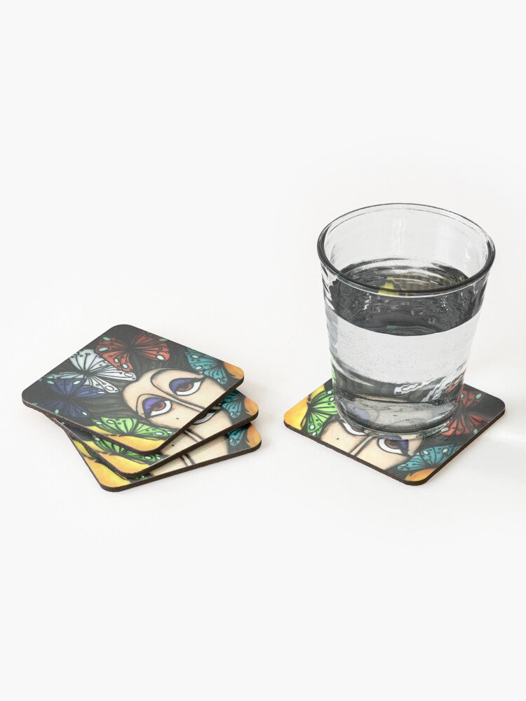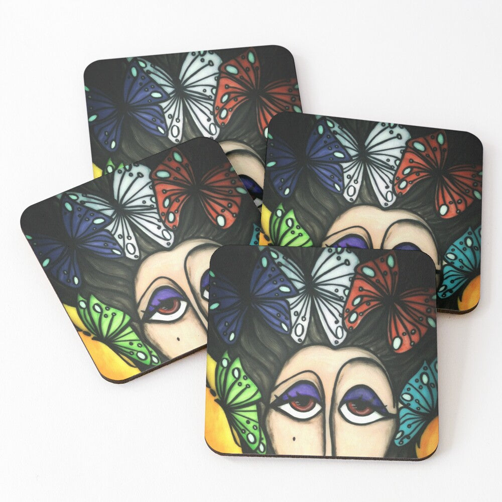 FARFALLE NELLA TESTA - SOTTOBICCHIERI (set da 4) su ordinazione