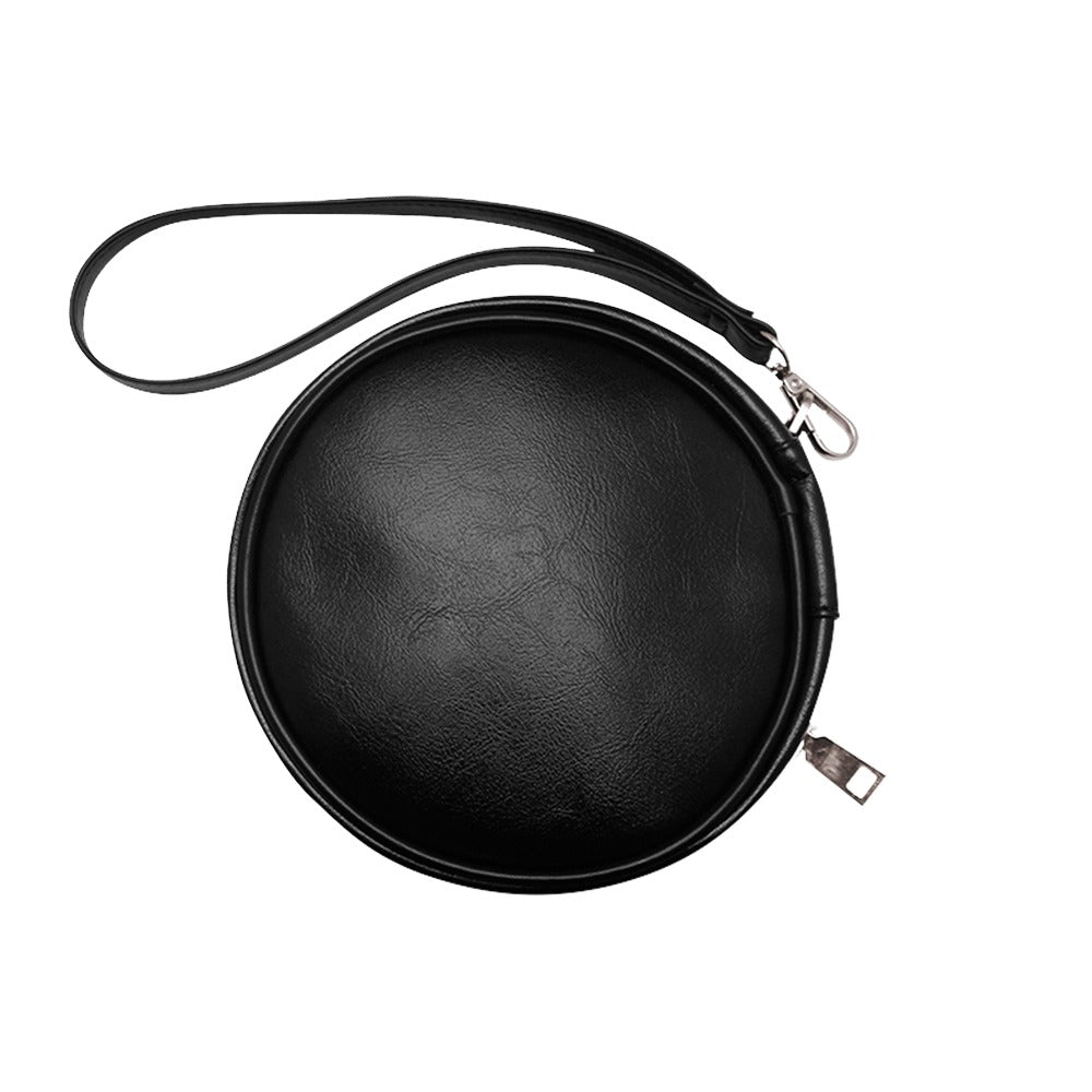 Type: High-grade PU leather, Round & wristlet strap handle, 7"(diameter) x 1.5"(height), One-side Printing